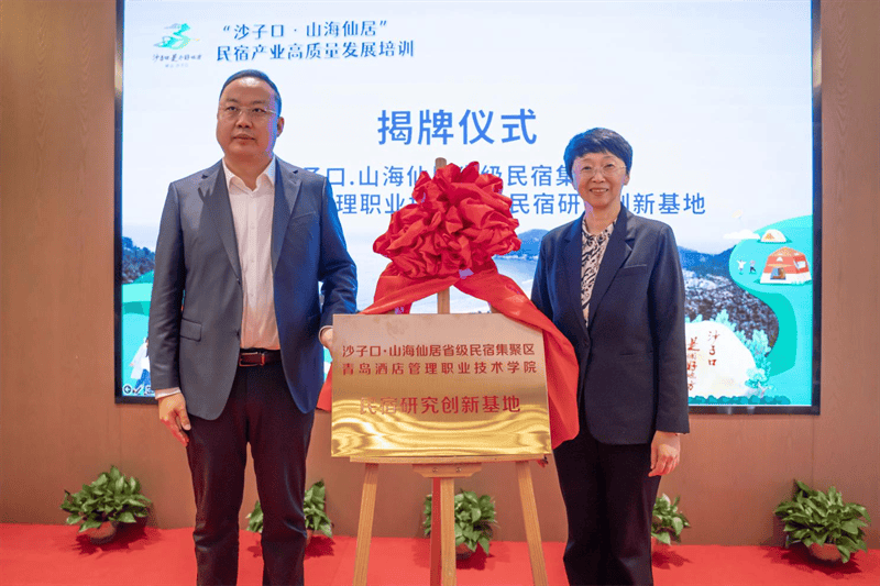 活动现场还举行了两项重要仪式,为沙子口民宿产业高质量发展筑牢根基。一方面,街道为首批8位沙子口民宿智库专家颁发聘书,后续专家将通过专题授课、实战指导、案例分享等方式,深度参与民宿从业人员培养,全面提升行业专业能力;另一方面,“沙子口·山海仙居旅游民宿集聚区—青岛酒店管理职业技术学院民宿研究创新基地”正式揭牌。该基地将整合政府、行业、院校三方资源,重点开展民宿人才培养、特色课程开发、实训体系建设等工作,为沙子口民宿产业持续输送专业复合型人才,推动产业规范化、标准化发展。
