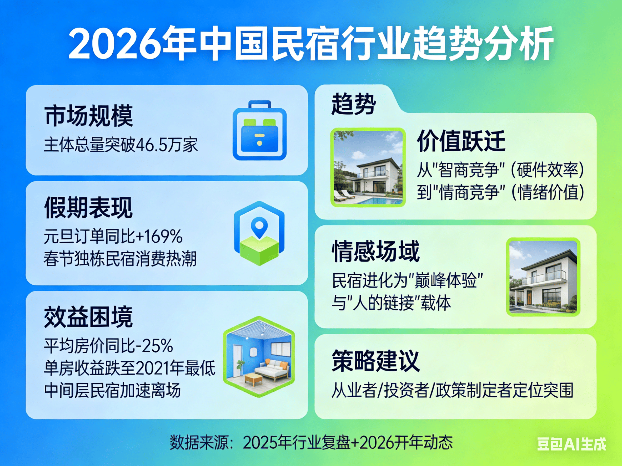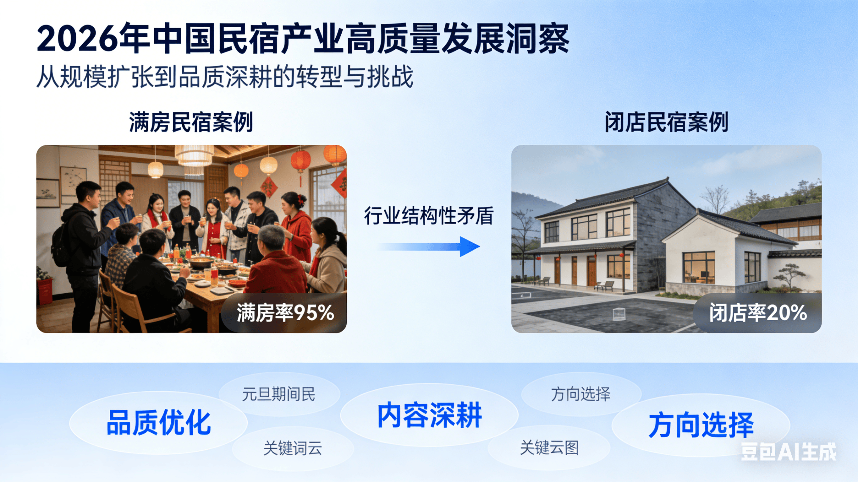开云体育官方,开云体育app,开云app下载,开云棋牌,开云直播,开云体育靠谱吗,开云体育和亚博,开云体育老板是谁,开云官网,开云体育,开云直播英超,开云电竞,开云游戏,开云,开云体育官网,开云体育官方网站, 开云app, kaiyun sports, 开云体育简介, 开云体育官方平台, 世界杯开云, 开云体育app下载, 开云体育网址, 开云体育20252026年,中国民宿行业正处于从规模扩张向品质优化、从流量驱动向价值创造的历史性转折点。本报告基于对2025年行业发展的全面复盘,结合2026年开年市场动态,系统剖析民宿行业面临的“冰火两重天”格局:一方面,市场主体总量突破46.5万家,元旦假期订单同比增长169%,春节“最长假期”催生独栋民宿消费热潮;另一方面,“量增价跌”的效益困境持续深化,平均房价同比降幅达25%,单房收益跌至2021年以来最低水平,大量缺乏核心竞争力的“中间层”民宿加速离场。