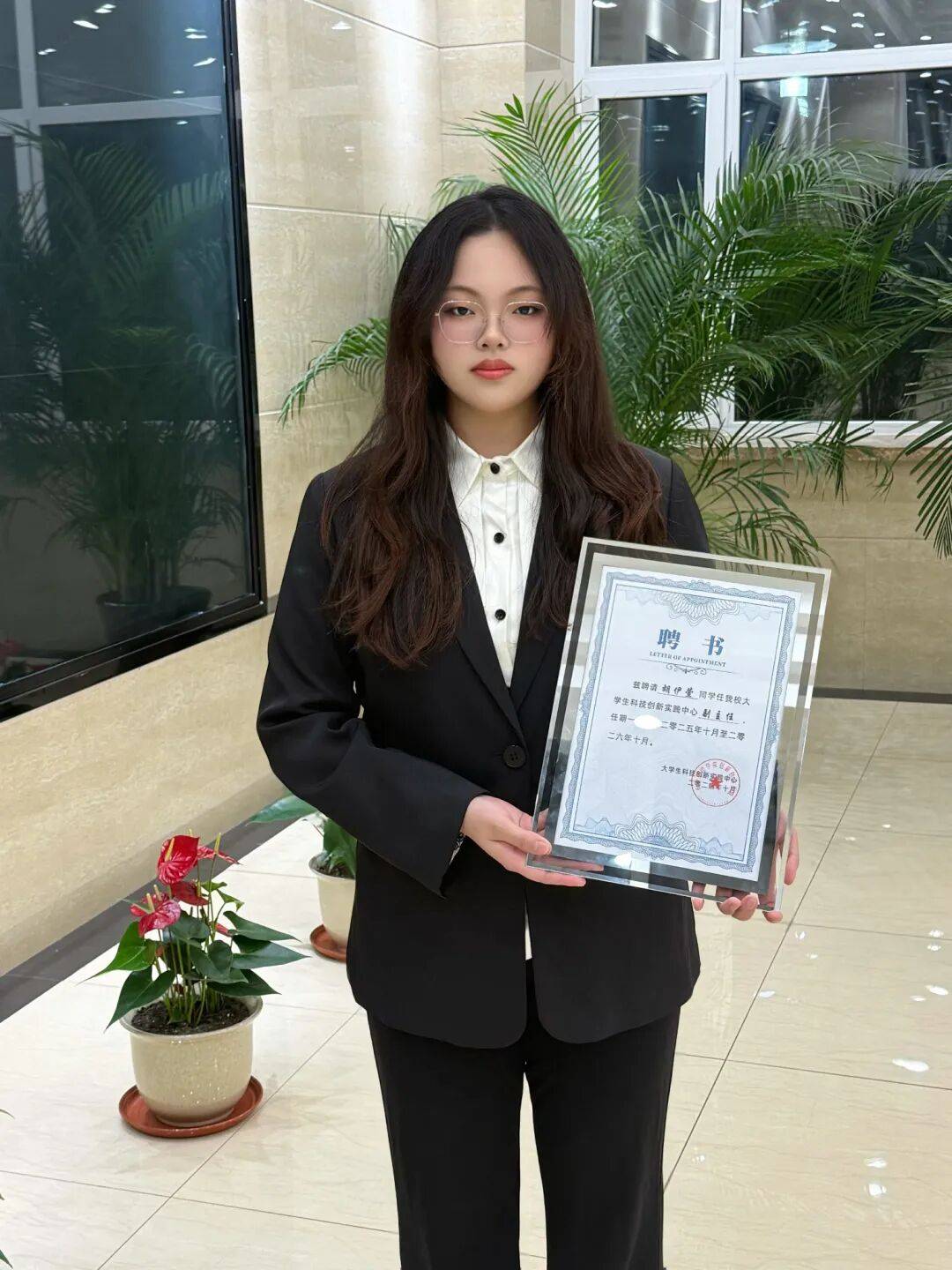 获2024-2025年度国家奖学金,2023-2024年度国家励志奖学金、获校“优秀团员”“学风建设先进个人”等称号;获电子商务“三创赛”吉林赛区省级二等奖,全国市场营销大赛社科赛国家级三等奖、“精创杯”吉林省云管理大赛省级三等奖两项、“用友杯”吉林省数智商业创新大赛省级三等奖、新文科实践创新大赛省级铜奖、“红石榴杯”创新创业计划省级金奖1项,铜奖2项、“东方财富杯”金融挑战赛省级三等奖;主持并参与大学生创新创业训练计划项目省级立项1项、参与吉林省职业教育研究中心教师课题省级立项1项;多次参加志愿活动。
